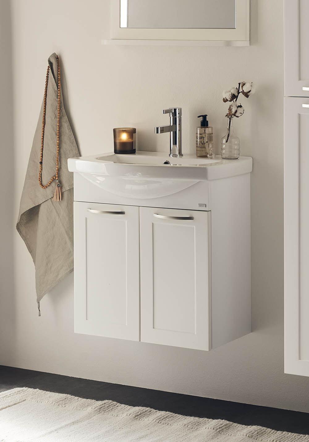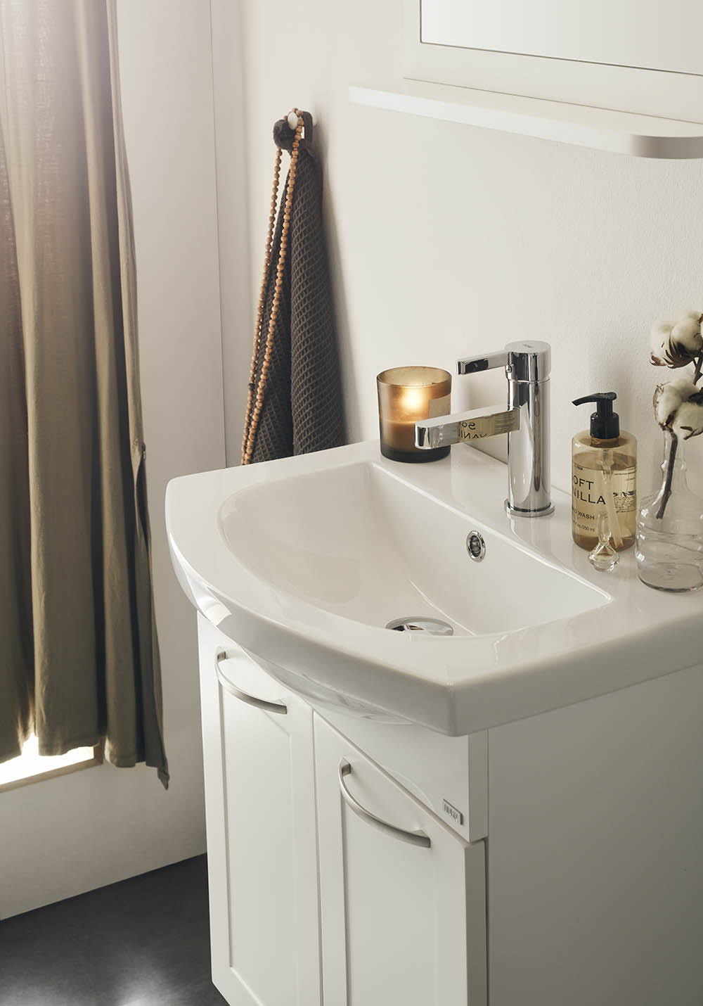 En klassisk og vakker møbelserie i all sin enkelhet. Fix fås i bredde 550mm og møbelet er fullakkert i hvit matt med rammefront. Servant er inkludert. Dørene er utstyrt med Soft Close-funksjon. Kombiner med Flex eller Deco speil. Hvis du leter etter speilskap med stikkontakt, erl Alva speilskap et god tog rimelig alternativ. Håndtak cc128, blandebatteri, vannlås og bunnventil kjøpes separat.