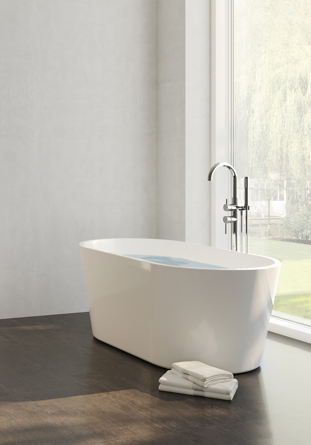 - Skal monteres på en påbygd opphøyning slik at vannrøret kan kobles til blandebatteriet fra vegg