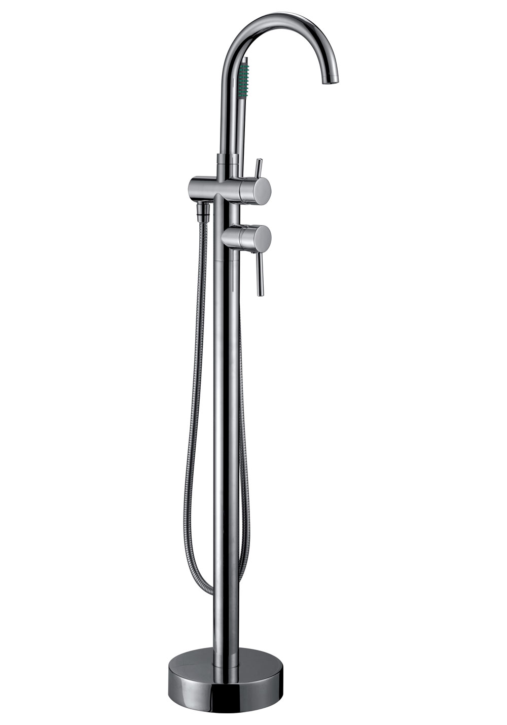 Gulvblander for badekar i forkrommet messing. Sand badekarblander skal monteres på en påbygd opphøyning slik at vannrøret kan kobles til blandebatteriet fra vegg. Vanntilkobling kan ikke gjøres ved gulvets overflate. Limsett til gulvblander. ART.NR: 0682