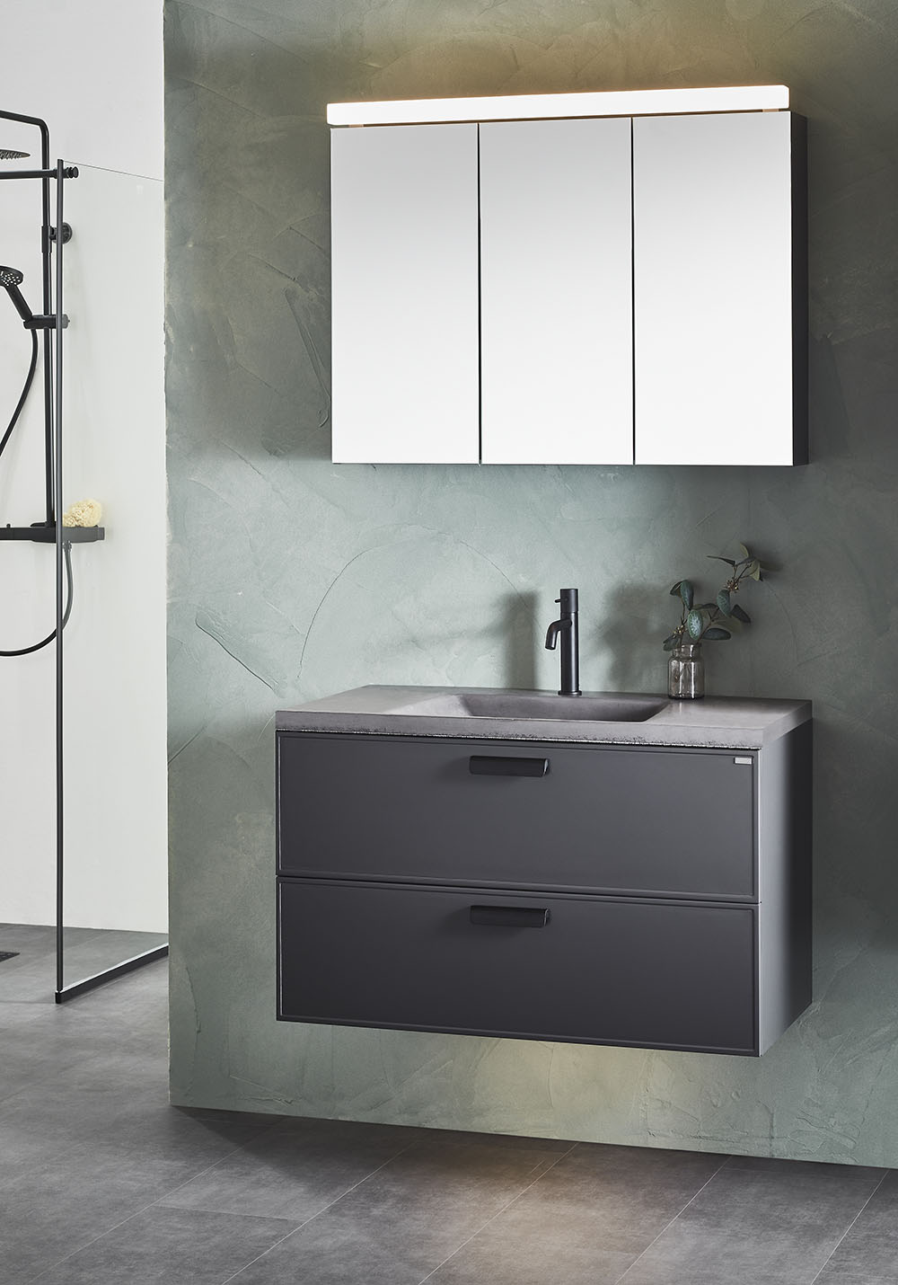 - Skjulte, myktlukkende hengsler utstyrt med dørdempere