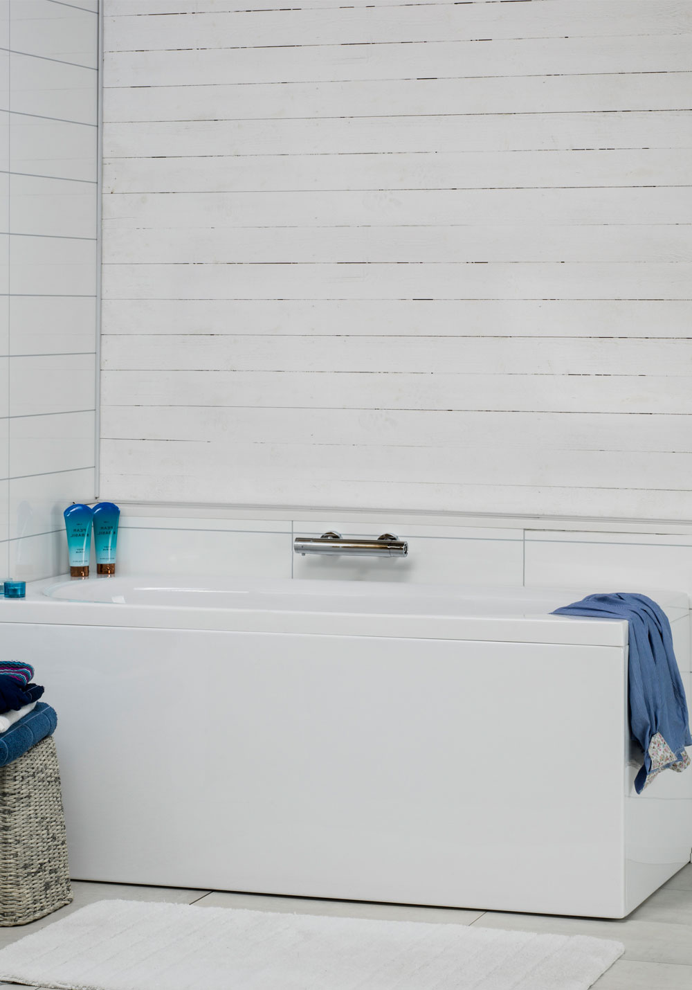 Et rektangulært og moderne badekar i sanitærakryl med rette linjer. Finnes i to lengder.