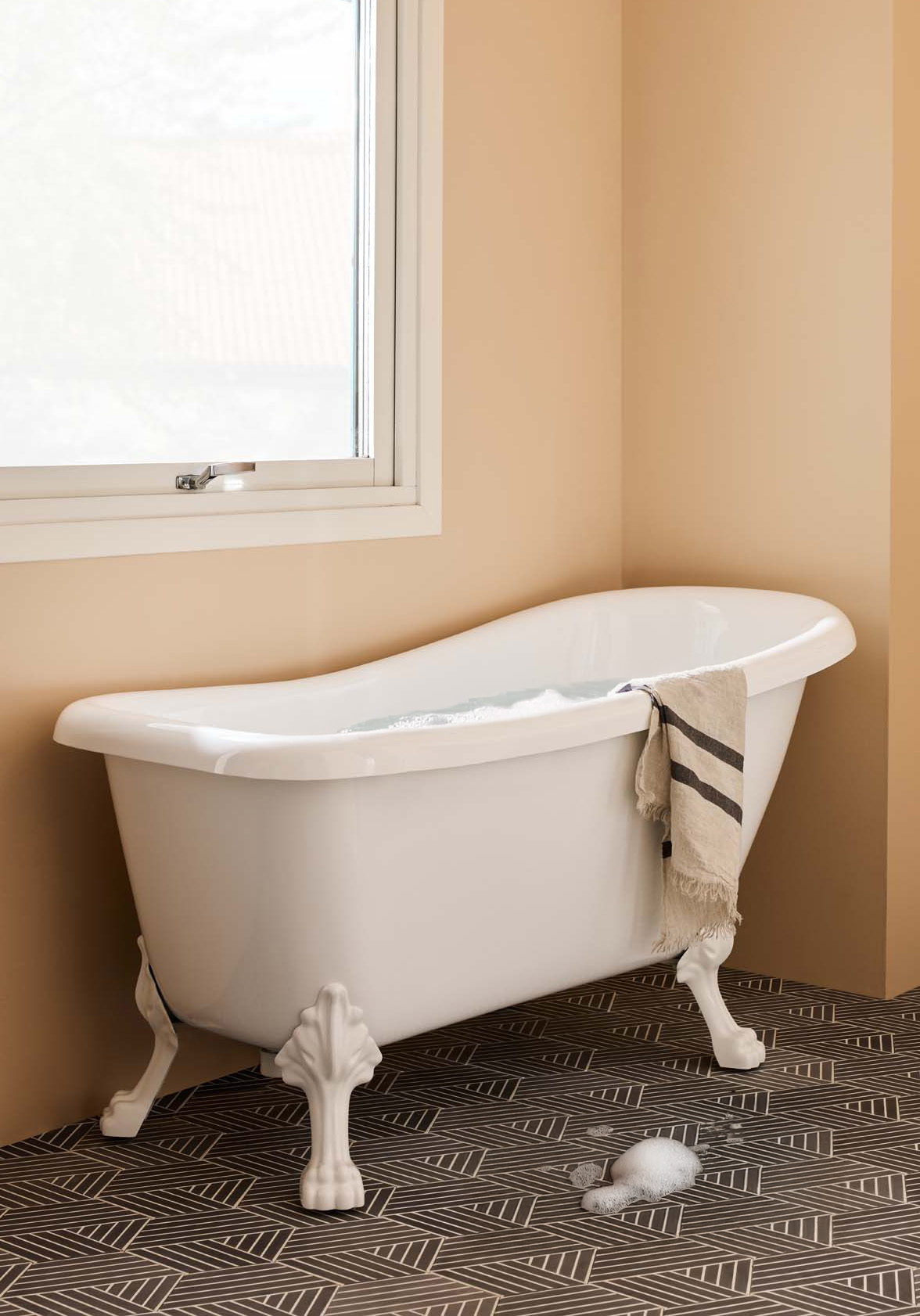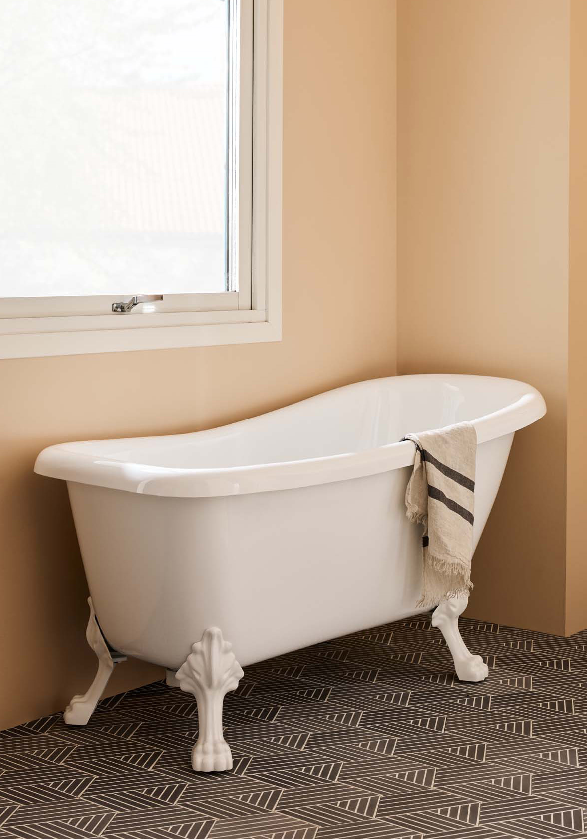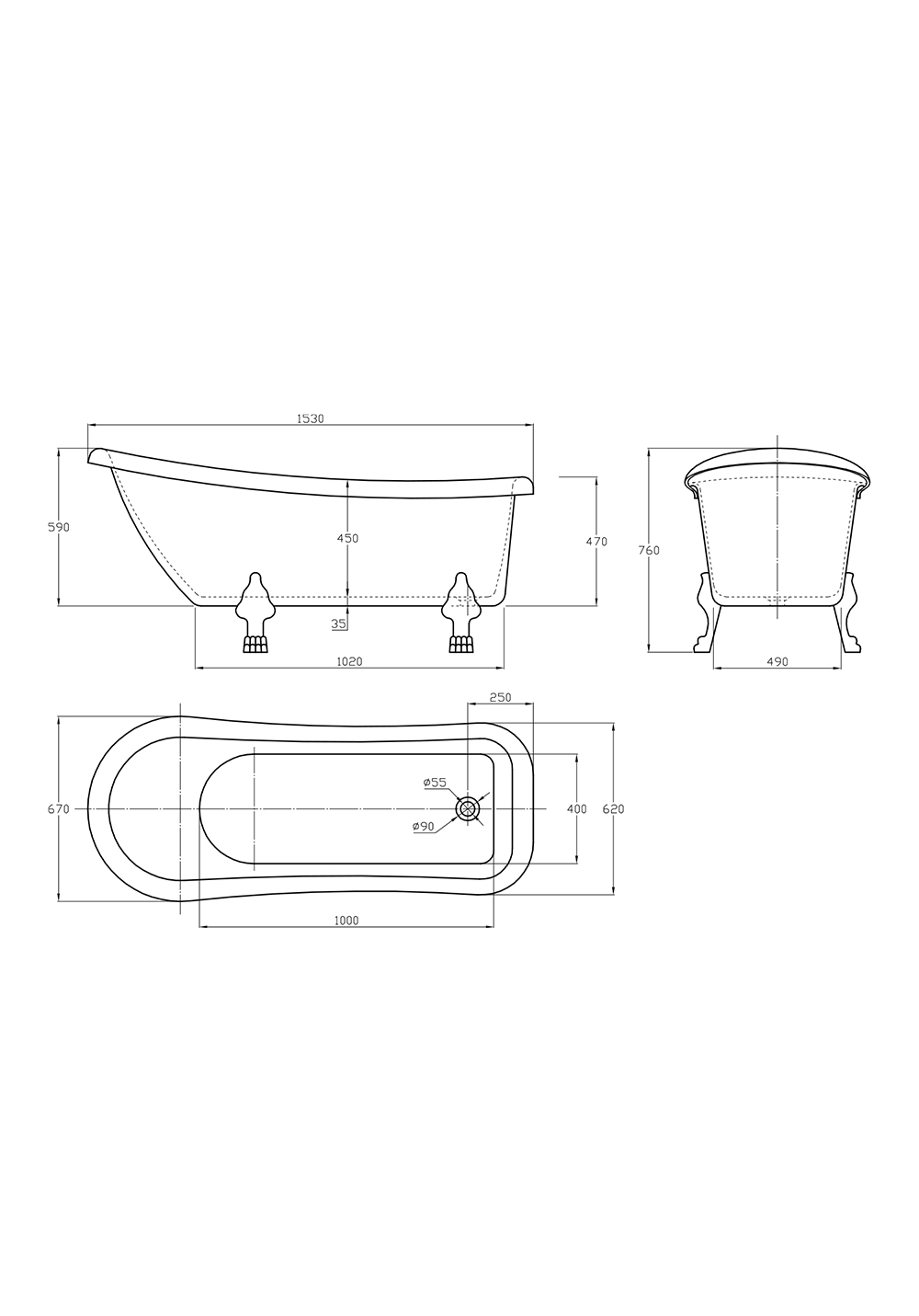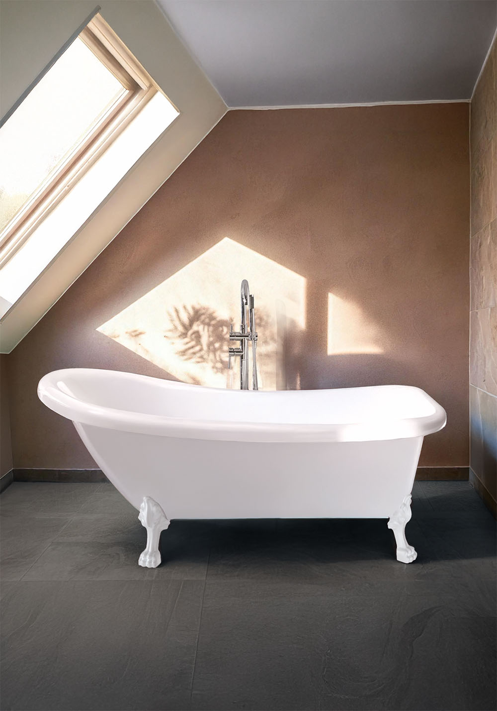 Stabilt, vakkert og klassisk badekar i sanitærakryl. Karet finnes i to farger, og har forsterket bunn. Velg mellom ulike justerbare løveføtter. Leveres med forkrommet bunnventil og avløpsrør.