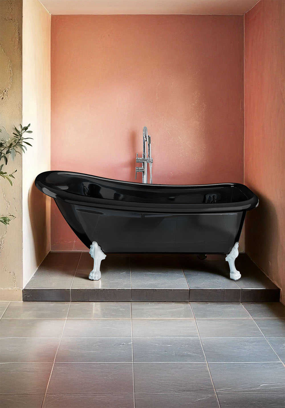 Stabilt, vakkert og klassisk badekar i sanitærakryl. Karet finnes i to farger, og har forsterket bunn. Velg mellom ulike justerbare løveføtter. Leveres med forkrommet bunnventil og avløpsrør.