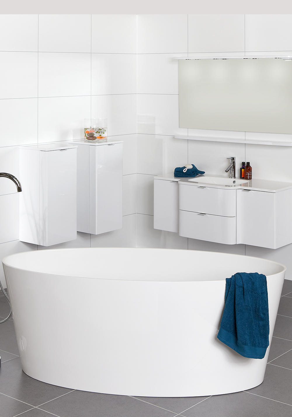 Badekar av støpemarmor, meget vakkert og tidløst med klassiske linjer. Leveres inklusive forkrommet bunnventil, avløpsslange og justerbare føtter.
