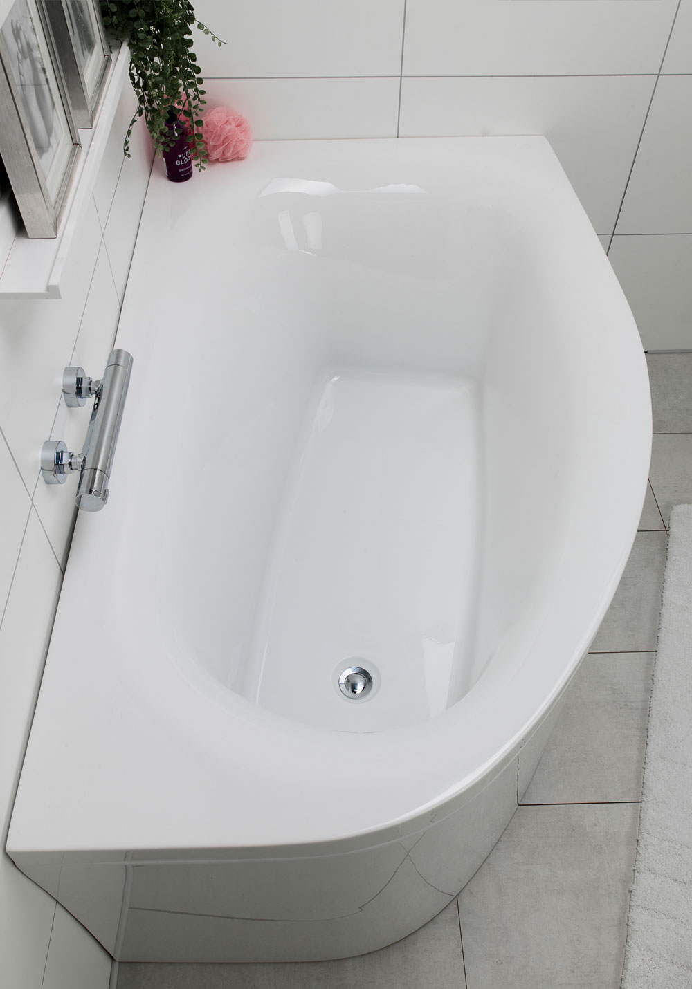 Offsetbadekar i sanitærakryl i et flott design som passer bra på bad med begrenset plass. Finnes i høyre- og venstre utførelse.
