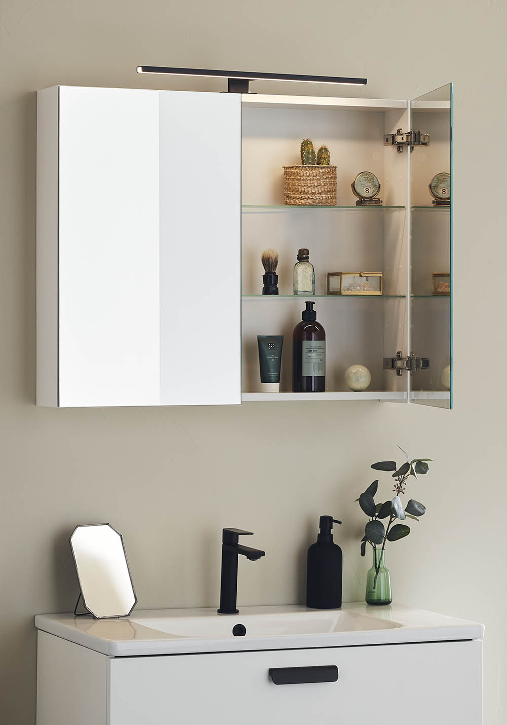 LED-lampe beregnet for baderom. Passer bra til Flex speil og speilskap. Varmhvitt lys 3000K. IP44.