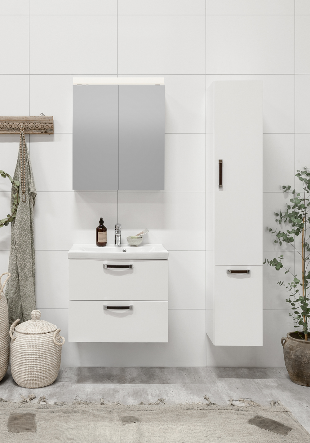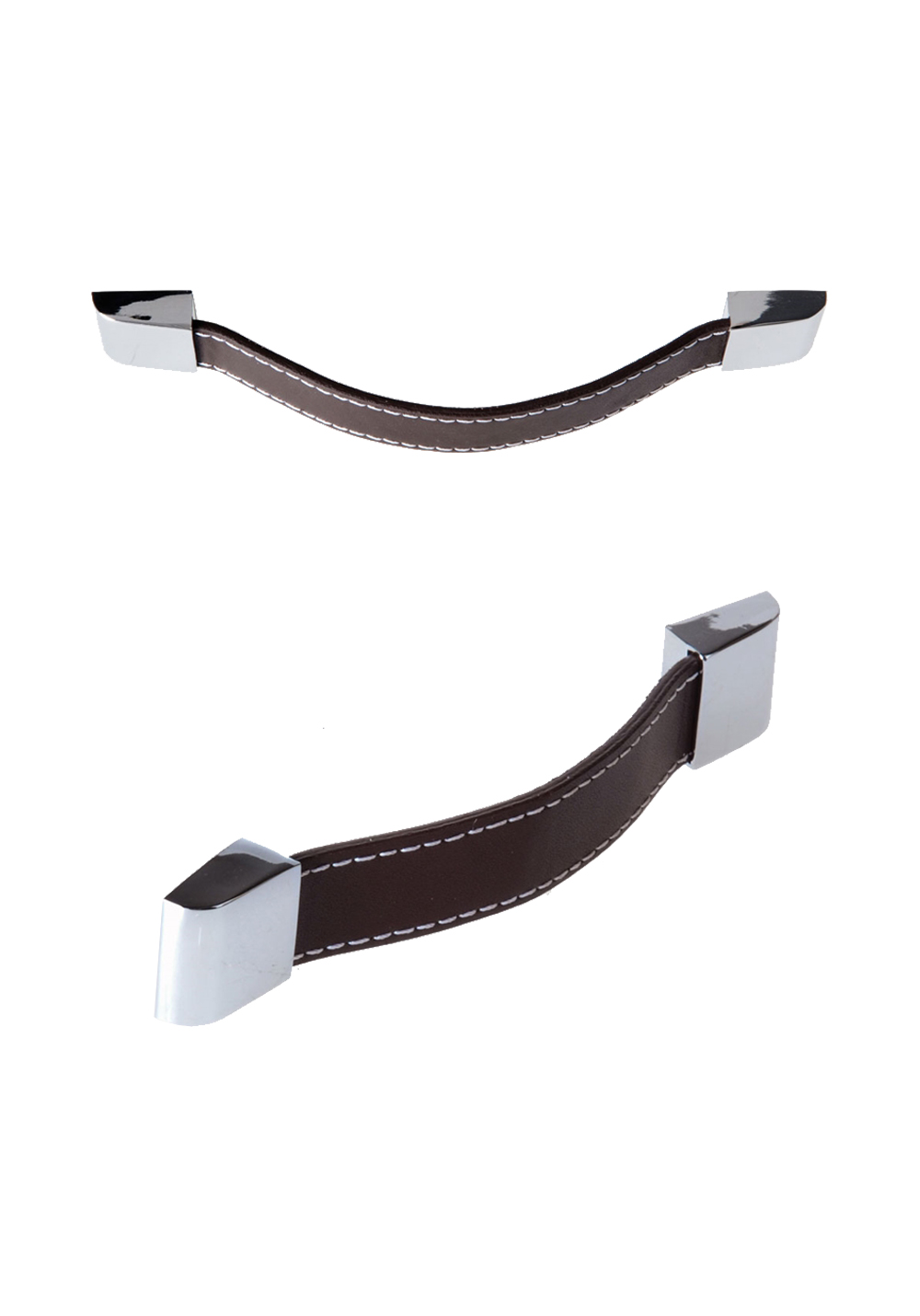Håndtak i brunt kunstskinn. CC er dimensjonen mellom skruehullene.