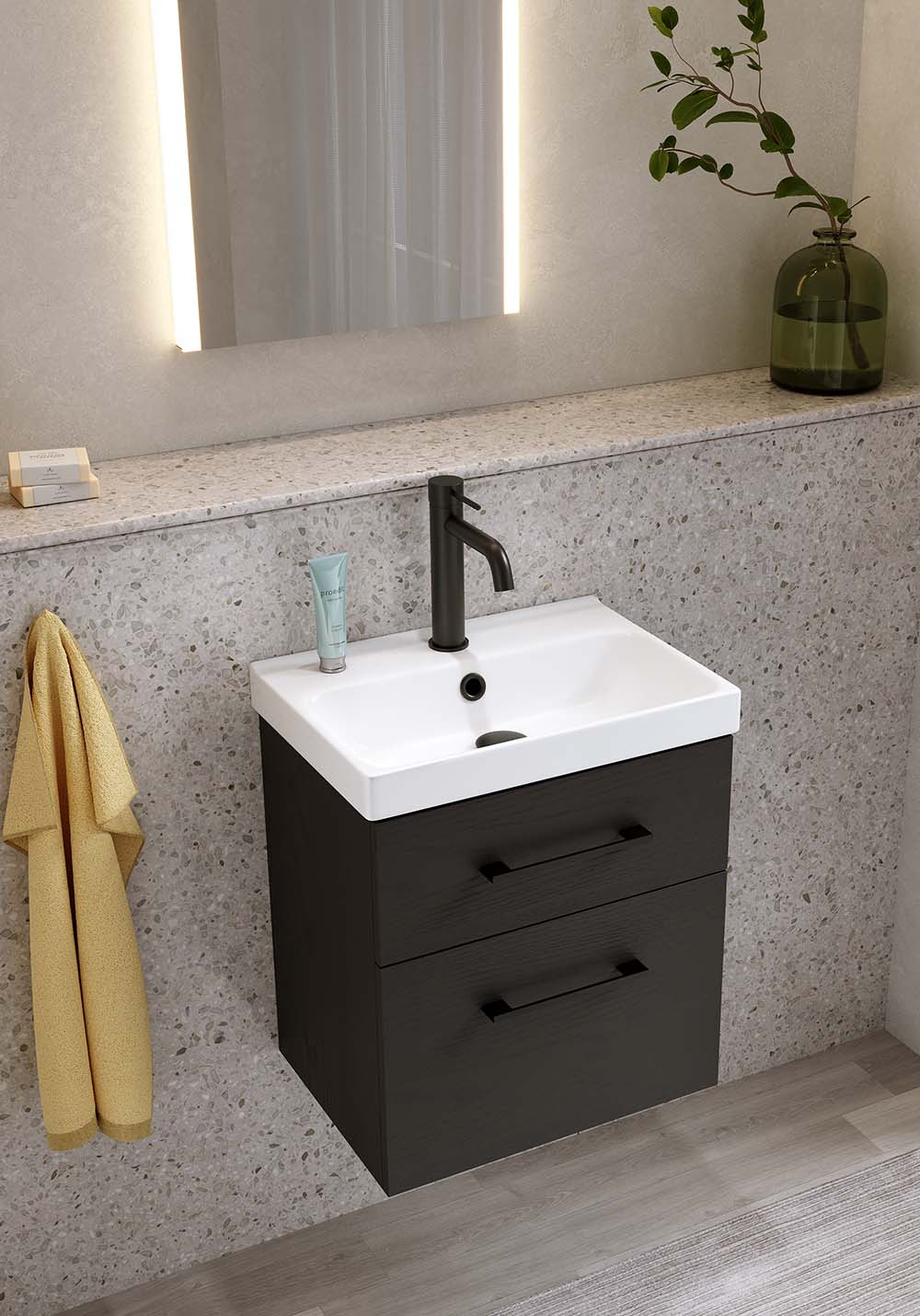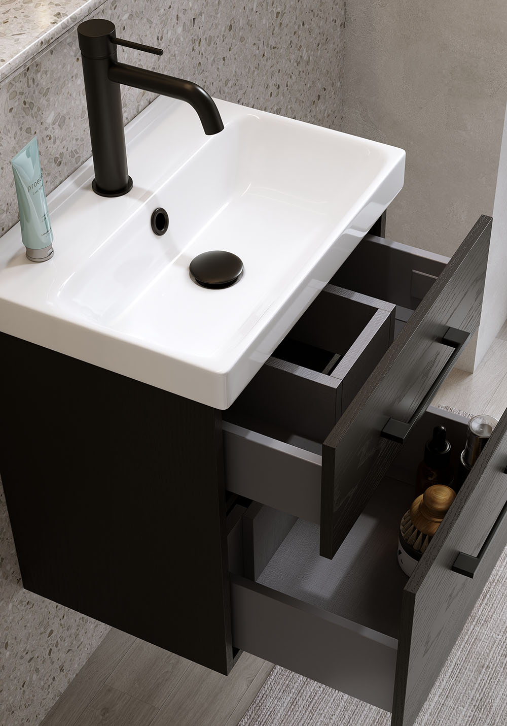 Servantskap Fix Trend Svart Tretekstur Med Servant 420
