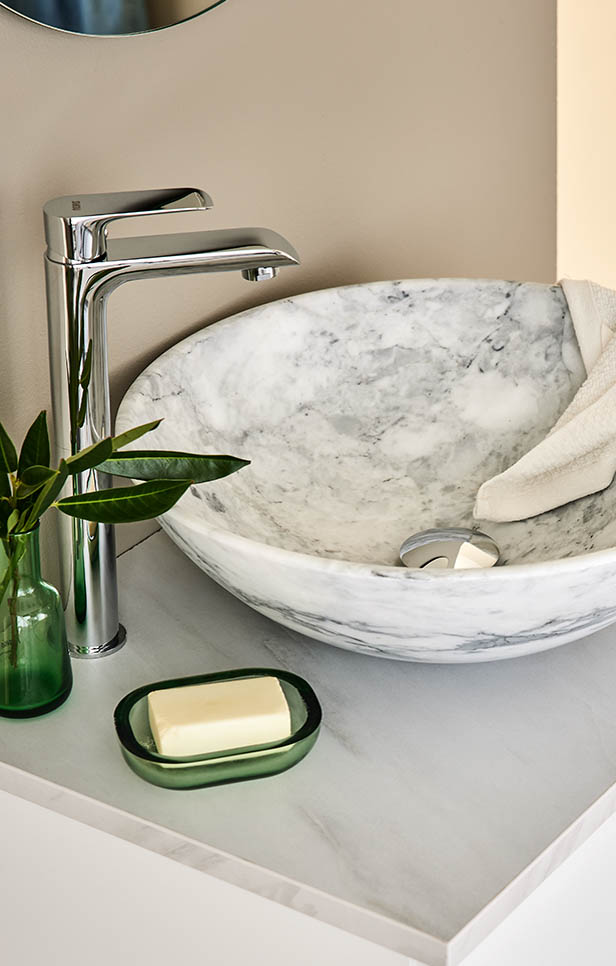 Noro Relounge baderomsskap med benkeplate i trendy design gir deg muligheten til å skape ditt personlige bad med sine unike mål og integrerte håndtak. Relounge er et designet baderomsmøbel som gir et luksuriøst preg og passer også til et smalt baderom. Finnes med hvit matt finish og svart trestruktur, og i flere bredder, og det er stor sjanse for at du finner noe som passer akkurat ditt baderom. Benkeplate av MDF med slitesterk overflate av melamin. Valg til en elegant frittstående servant. Leveres montert, klargjort for både vegg- og gulvavløp. Enkel installasjon med justerbare opphengsbeslag. Kjøp til bunnventil, avløpssett, stikkontakt og blandebatteri.
