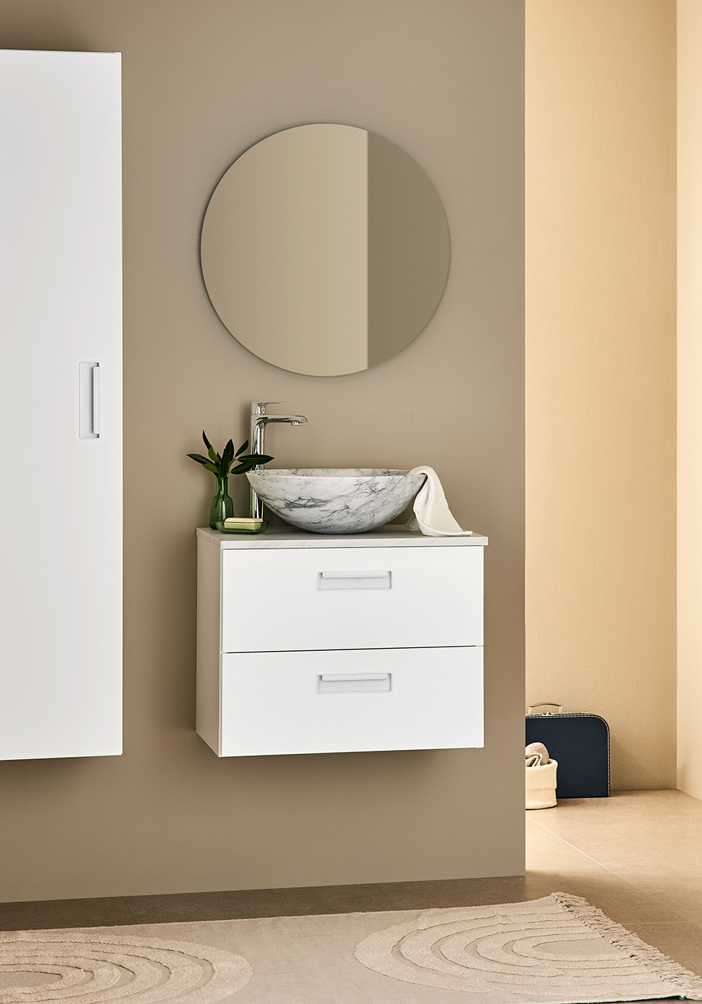 Servantskap Relounge Hvit 600 Med Benkeplate Lys Marmor