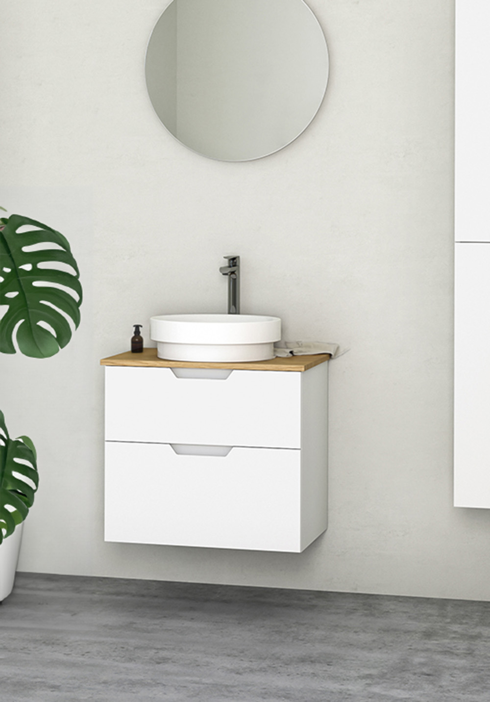 - Løstagbar skuffematte og skuffeinnredning i bambus og porselen