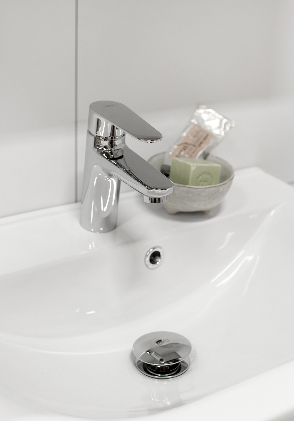 Blandebatteri i forkrommet messing. Lettmonterte blandere - feste i servant eller benkeplate skjer uten verktøy. Testet og sertifisert av SINTEF. Suppler med bunnventil.