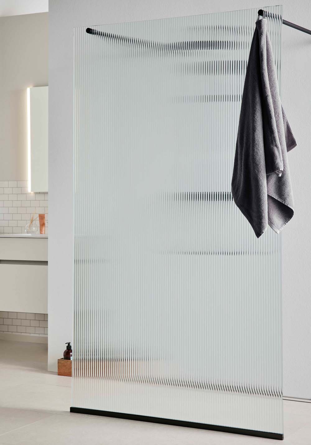 Frost er en serie med rette og elegante dusjvegger. Finnes i varianter med stenger og profiler i mattsølv eller mattsvart finish og med glass i flere spennende design. Serien omfatter modeller for plassering i hjørner og mer sentralt i rommet. 8 mm tykt sikkerhetsglass. Draperistangen er 120 cm lang og kan enkelt kappes til ønsket lengde. Stangen kan festes til vegg eller tak. Robust konstruksjon med kraftig aluminiumsprofil. Tåler gulvfall på opptil 10 mm. Profil for utvendig rørføring kan kjøpes til.