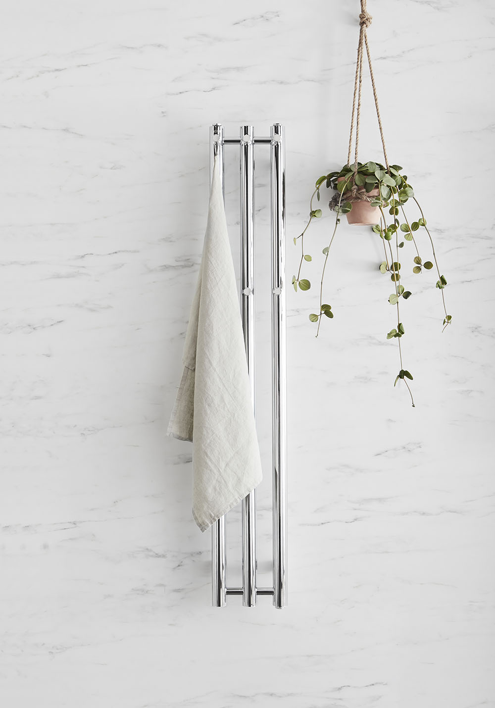 - En smart og lettplassert håndkletørker med stående forkrommede rør som gir maksimal tørkeeffekt