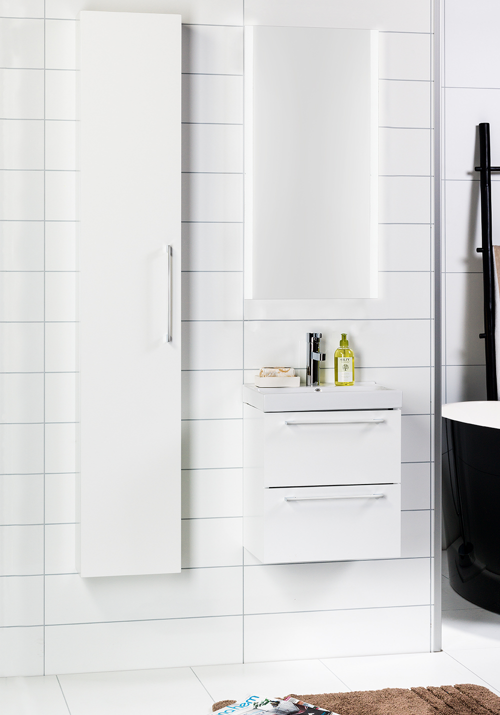 Stilrent speil med LED-belysning på sidene som lyser utover og rett frem, noe som gir godt lys ved f.eks. sminking og barbering. Varmhvitt lys på 3000K. IP44.