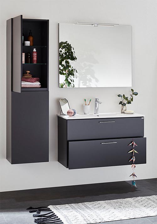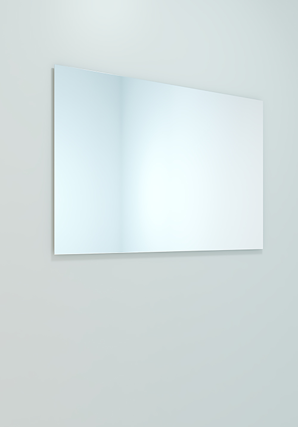 Planspeil med skjult oppheng og plass bak (henger 12mm fra veggen) til å skjule elinstallasjon av f.eks. Flex LED-lampe eller Flex LED-belysningsprofil som kjøpes til.