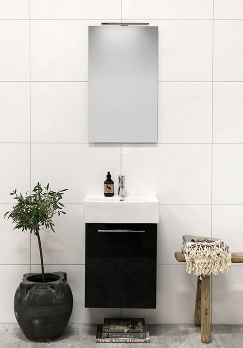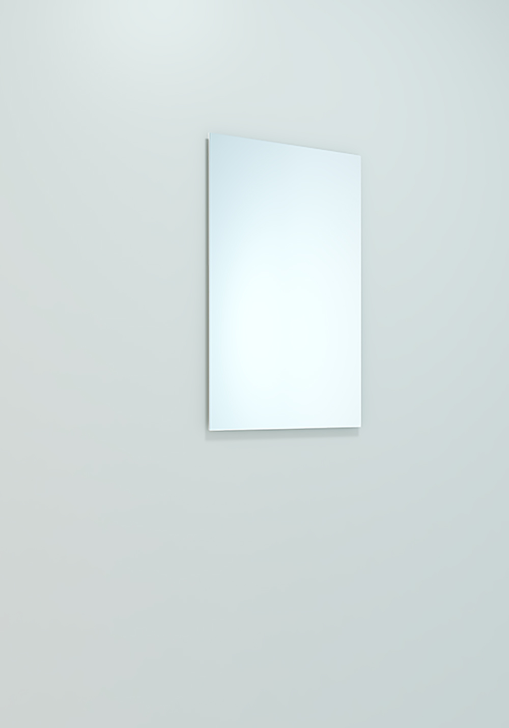 Planspeil med skjult oppheng og plass bak (henger 12mm fra veggen) til å skjule elinstallasjon av f.eks. Flex LED-lampe eller Flex LED-belysningsprofil som kjøpes til.