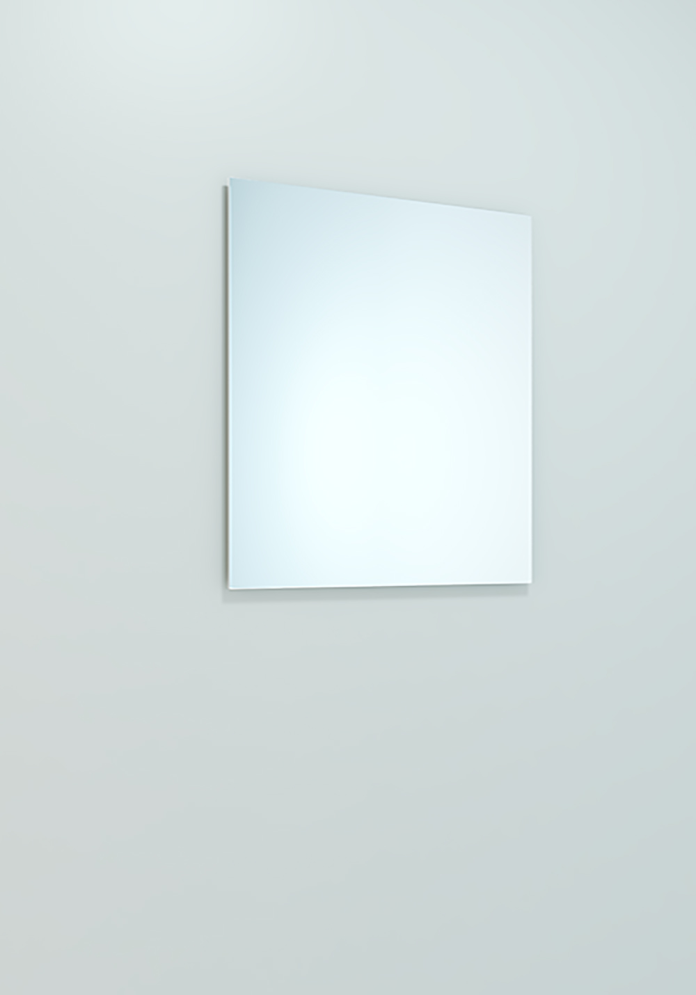 Planspeil med skjult oppheng og plass bak (henger 12mm fra veggen) til å skjule elinstallasjon av f.eks. Flex LED-lampe eller Flex LED-belysningsprofil som kjøpes til.