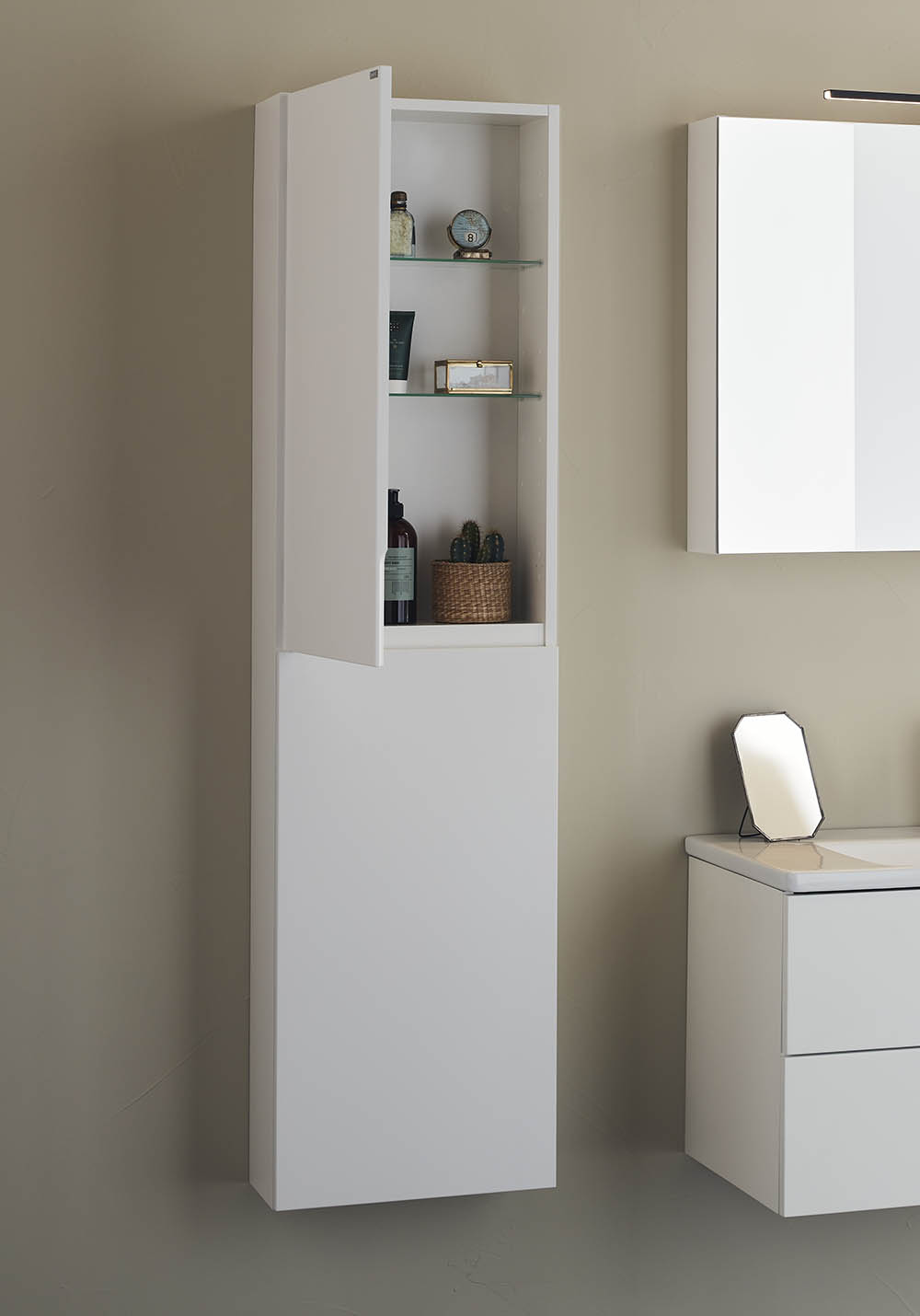 To myktlukkende dører som kan monteres til høyre eller venstre. Fire stk. høydejusterbare glasshyller. Leveres montert.Integrerte håndtak.