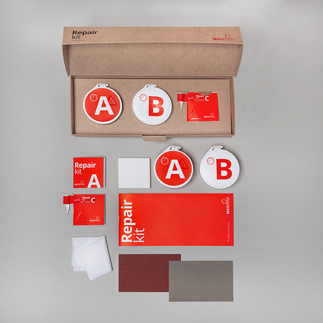 Reparasjonssett for badekar og servanter i støpt marmor i hvitt.